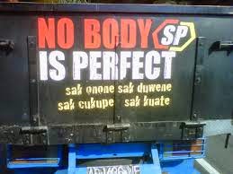 Berikut gambar atau tulisan unik di belakang truk yang sangat kreatif :