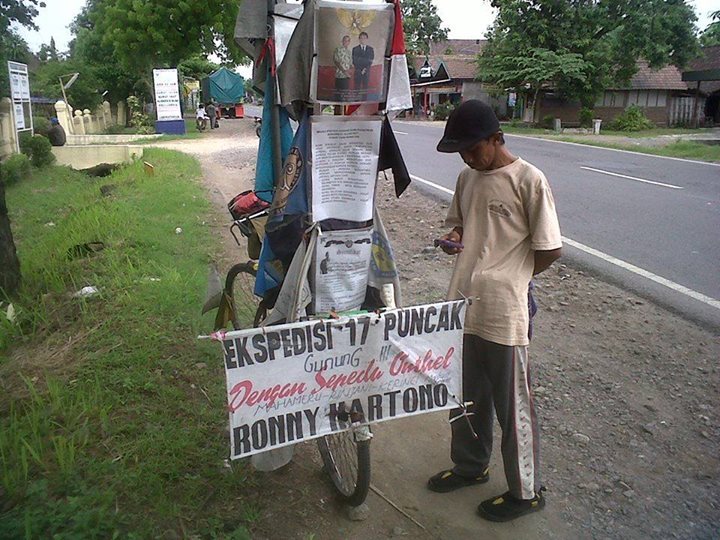 Pernahkah kamu melihat seorang pendaki membawa sepeda onthelnya ke puncak gunung? Ini baru tidak biasa namanya. Namun, hal ini dilakukan oleh seorang pria bernama Ronny Hartono. Pria yang sejak masa sekolah memang merupakan anggota pecinta alam ini punya cara tersendiri untuk mengekspresikan hobinya.