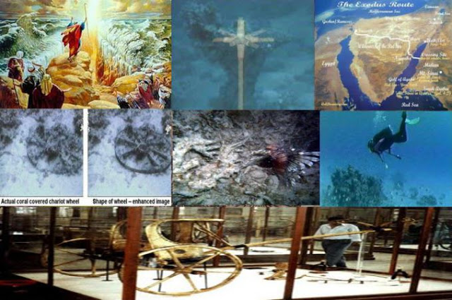 Seorang Arkeolog bernama Ron Wyatt pada ahir tahun 1988 silam mengklaim bahwa dirinya telah menemukan beberapa bangkai roda kereta tempur kuno didasar laut merah. Menurutnya, mungkin ini merupakan bangkai kereta tempur Pharaoh atau Fir’aun yang tenggelam dilautan tersebut saat digunakan untuk mengejar Musa bersama para pengikutnya.