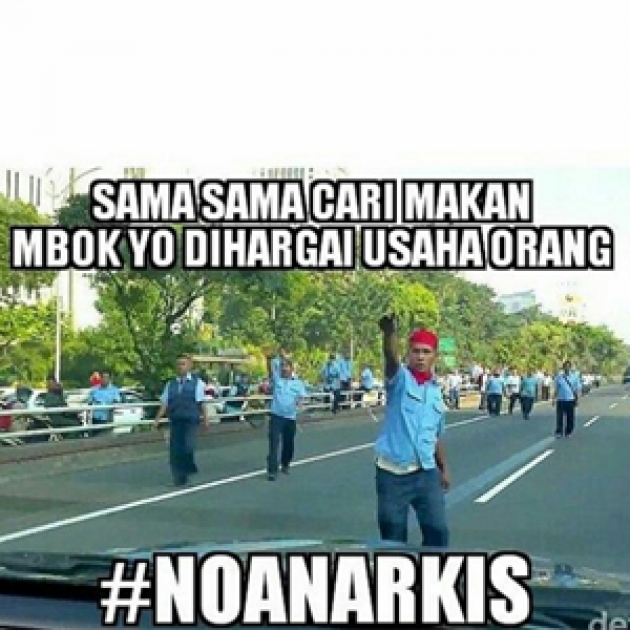 Di internet sudah banyak beredar beberapa foto dan video yang memperlihatkan suasana mencekam aksi anarkis dari beberapa oknum supir taksi tersebut. Namun, daripada kita juga turut bersitegang, kali ini tim WajibBaca justru ingin menyajikan Kumpulan MEME Lucu dari Demo Supir Taksi Blue Bird tersebut dimaksudkan agar situasi dapat lebih tenang. Meme-meme ini diambil dari berbagai sumber.