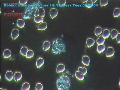 Dan tampaklah perubahan drastis pada darah Rebecca tersebut setiap kali emosinya berubah. Berikut ini adalah foto darah seorang Rebecca sebelum dan sesudah melakukan EFT.