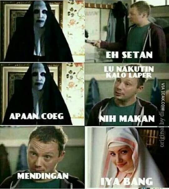Netizen pun kemudian membuat meme-meme karakter hantu Valak yang kocak dan membuatnya tak lagi tampak seram. Seperti apa hasilnya? Berikut wajibbaca.com rangkum dari beberapa sumber meme-meme kocak The Conjuring 2 yang bakal mengocok perutmu.