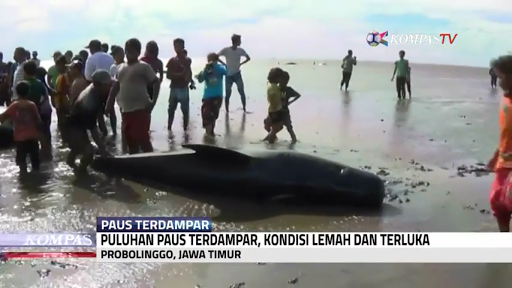 VIDEO : KASIHAN, Di Probolinggo Ada 25 Paus Terdampar Di Pinggir Pantai