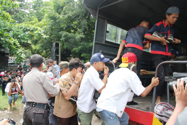 Hingga akhirnya aksi tawuran pun tak terelakkan. Polisi membawa ratusan pelajar yang terlibat dalam aksinya itu. polisi juga mengamankan beberapa barang bukti berupa batu dan gir.
