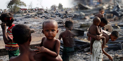 Lihat kondisi anak-anak ini. Pengungsian muslim Rohingya di Myanmar terbakar. ©REUTERS/Soe Zeya Tun