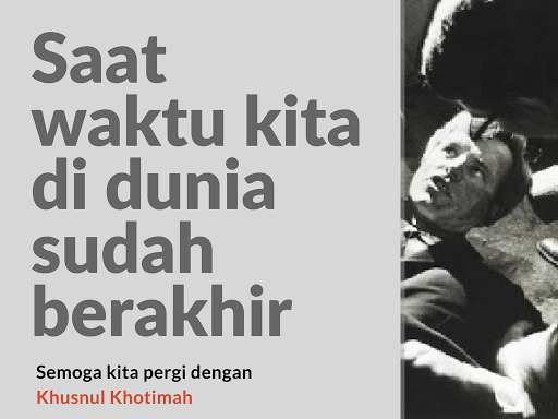Kini malaikat maut duduk di sampingmu, ayah tidak dapat menjelaskan wujudnya, mahluk ini tidak pernah ayah liat sebelumnya. Andai di beri kesempatan satu kali lagi untuk beriman kepadaNya, maka tidak akan ayah tinggalkan masjid, mulut ini akan selalu melantunkan ayat-ayat-Nya, semua harta ayah salurkan kepada anak yatim. Dan tidak tinggal diam atas sumbangan demi penderitaan fakir miskin.