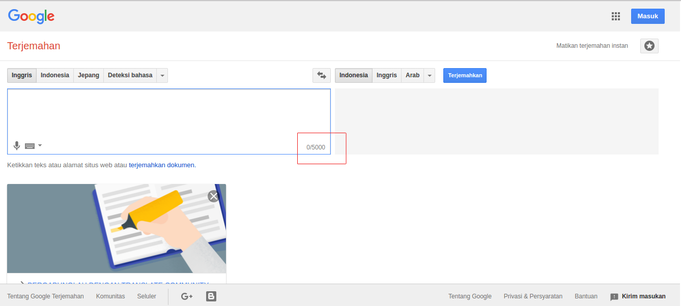 Artinya, dalam satu kali menerjemahkan, Google Translate hanya bisa mengalihbahasakan maksimal 5.000 karakter, tak mampu melebihi itu.