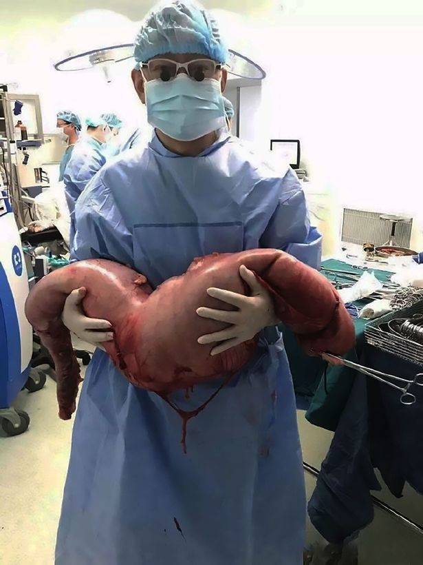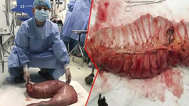 Tim dokter kemudian melakukan pembedahan perut pria itu dan menemukan usus dengan ukuran besar.