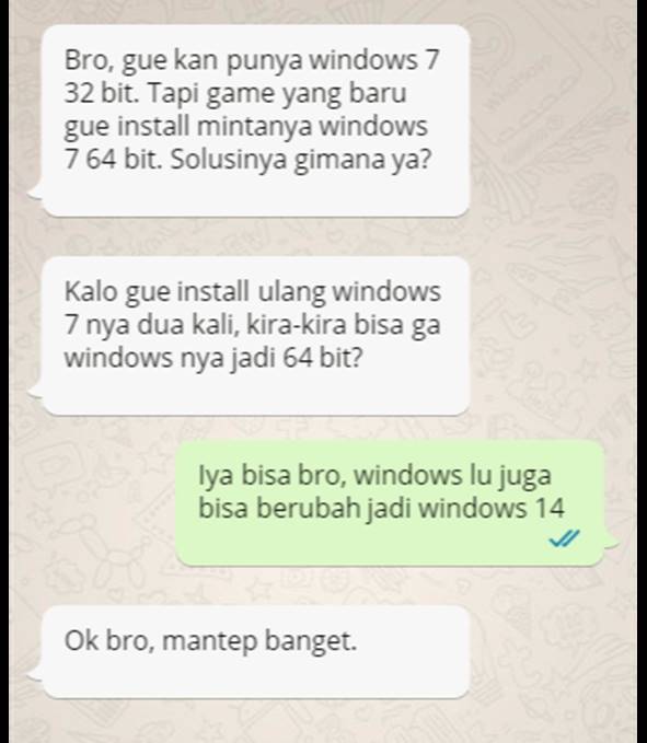 Tapi sayangnya masih banyak orang-orang yang memahami perkembangan teknologi ini dengan caranya sendiri. Seperti beberapa percakapan orang-orang berikut ini yang bikin tepok jidat gara-gara kelewat gaptek. Dilansir dari brilio.net, siap-siap ketawa ngakak ya.