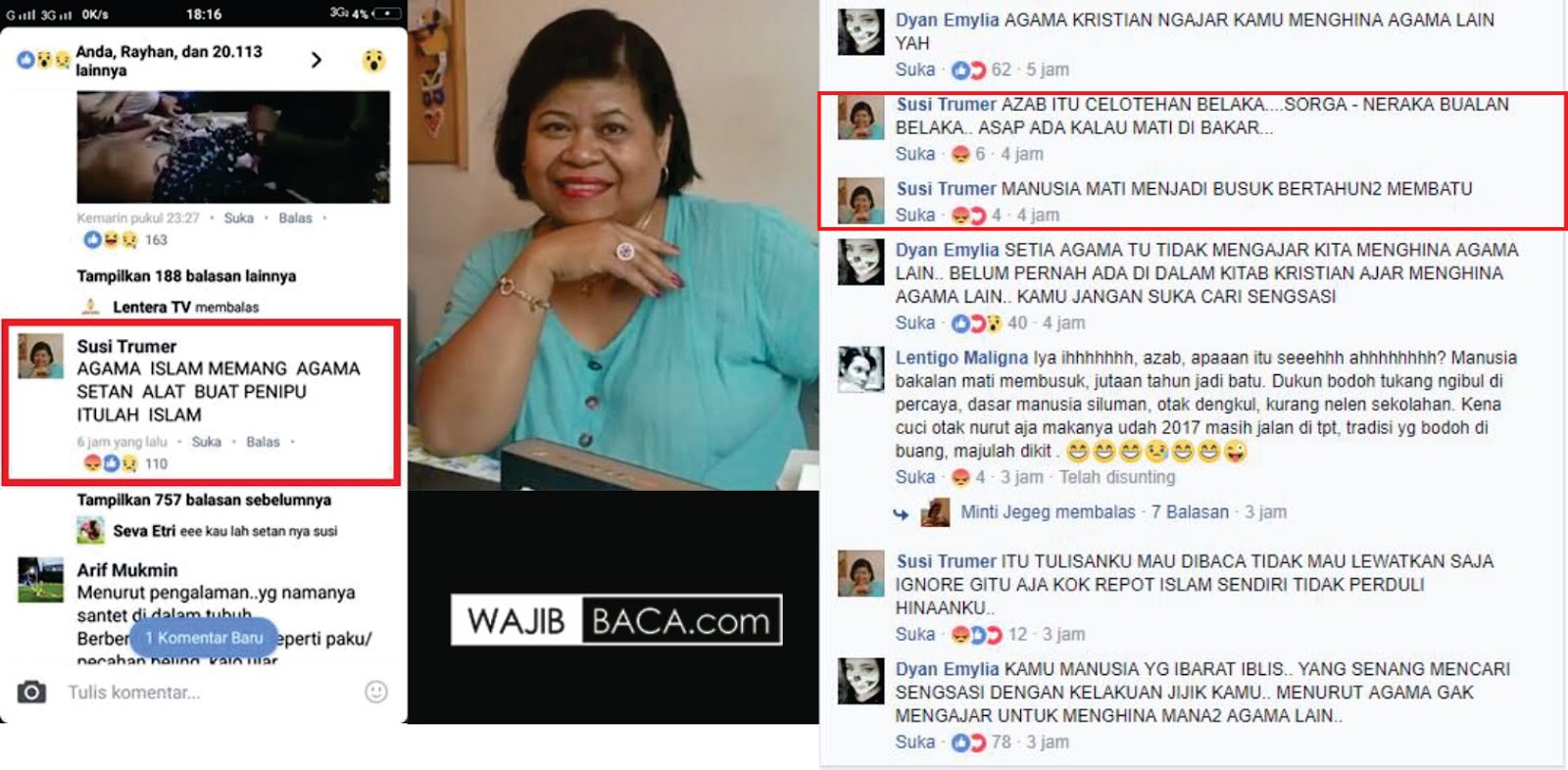 Adalah akun Susi Trumer yang entah bagaimana awalnya kemudian membubuhkan komen yang menyinggung umat Islam.