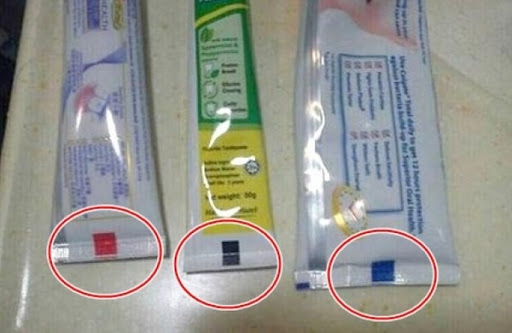 Sedikit dari kita yang memperhatikan warna yang terdaftar dibagian bawah kemasan/tabung pasta gigi yang kita beli. Saat melihatnyapun kita cuma memikirkan bila itu cuma warna sembarangan yang tercetak pada sistem produksi.