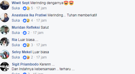 “Merinding dan meneteskan air mata mendengarnya. Sungguh dalam menyentuh kalbu. Tuhan memberkati,” tulis akun Laksmi Hartayanie.
