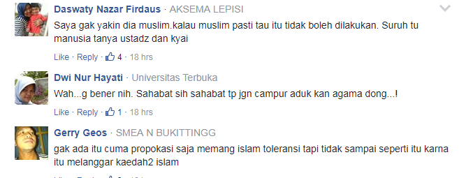 @Daswaty Nazar Firdaus: "Saya gak yakin dia muslim.kalau muslim pasti tau itu tidak boleh dilakukan. Suruh tu manusia tanya ustadz dan kyai"