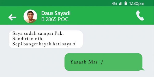 Kamu sering memanfaatkan transportasi ojek atau taksi online? Pernah dapet chat yang bisa bikin kamu mesam-mesem sendiri?