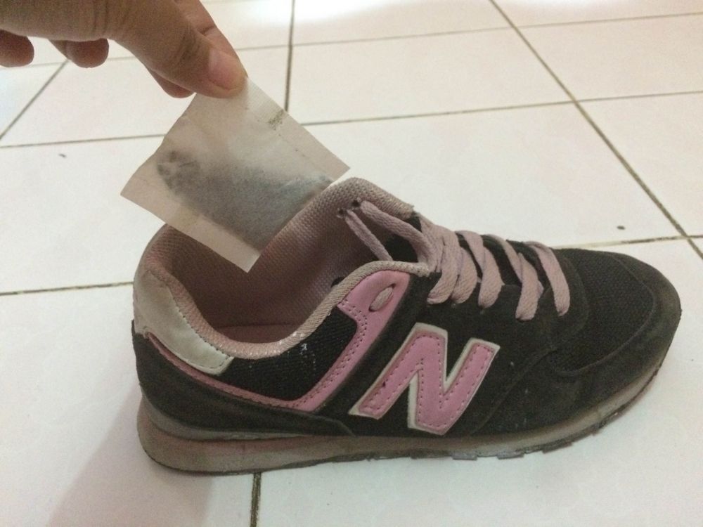 Kamu bisa menggunakan teh celup dan meletakkannya di setiap sepatu.
