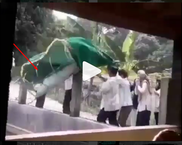 Didalam video tersebut terlihat jelas beberapa orang pelayat memakai baju putih sedang menggotong keranda