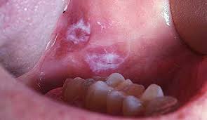 - Bercak merah atau putih dalam mulut.
