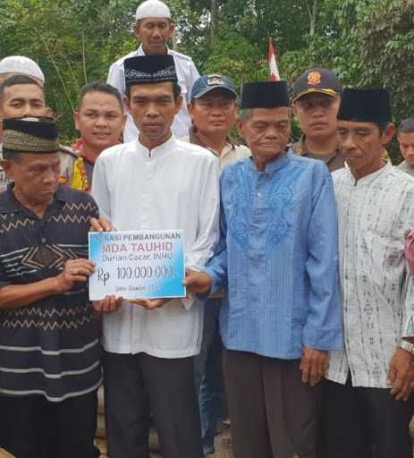"Saya jawab, 'kita antar duit itu bersama-sama ke Durian Cacar. Kita buat Madrasah. Namanya Madrasah at-Tauhid. Karena tulisan di topi itu kalimat Tauhid'," kata UAS.