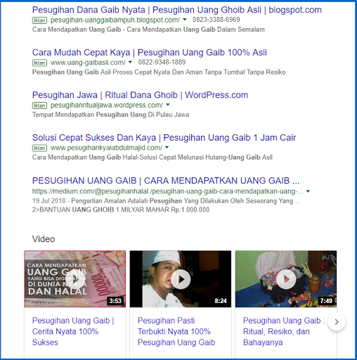 Iklan pesugihan uang ghoib Penelusuran Google sudah banyak makan korban