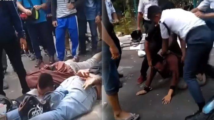 Dalam video yang beredar, kedua korban tampak tersungkur dikerumuni banyak orang.