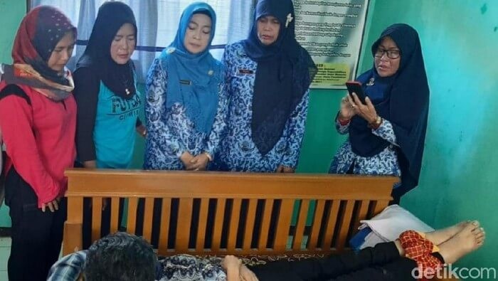 Saat berjalan di depan kelas, Eti yang sempat memegang tongkat mendadak limbung dan jatuh di lantai. Murid yang melihat kejadian itu langsung memberitahukan kepada guru lain.