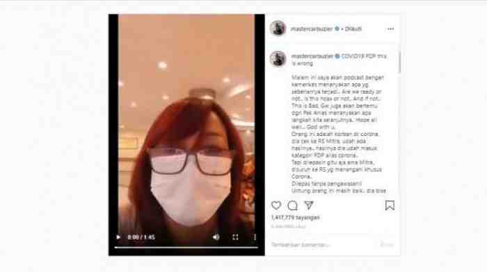 "Orang ini adalah korban dr corona, dia cek ke RS MItra, udah ada hasilnya.. hasilnya dia udah masuk kategori PDP alias Dalam pantauan corona..