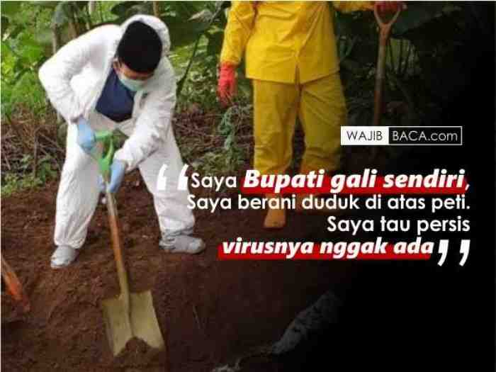 Penulis Dian Aprilia | Ditayangkan 02 Apr 2020Bupati Banyumas Menggali Pemakaman Jenazah Covid-19 - Image from wajibbaca.com