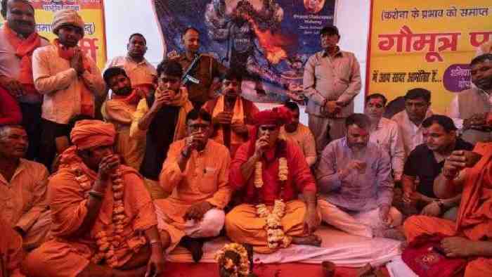 Penulis Isfatu Fadhilatul | Ditayangkan 17 Mar 2020Umat Hindu menggelar pesta minum urin sapi di New Delhi, India (14 Maret 2020) - Image from dunia.tempo.co