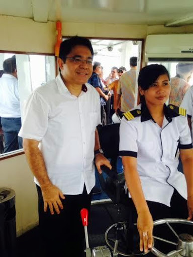 Wanita berparas manis ini sangat lihai dalam mengemudikan kapal pesiar yang kapasitas penumpangnya 30 Orang ini.