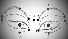 Kita dapat menerapkan tekanan ringan pada bola mata kita dengan ujung jari tengah dan telunjuk. Tekan ringan sehingga kita tidak merasa sakit. Kemudian dengan jari telunjuk Anda tekan titik-titik sesuai urutan seperti pada gambar diatas.