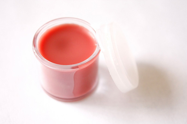 2 sendok teh air perasan buah bit dan 2 sendok teh air perasan buah blackberry lalu campurkan menjadi satu. Campurkan 2 sendok teh minyak zaitun pada campuran air perasan buah bit dan blackberry tadi lalu aduk sampai tercampur rata. Gunakan lipbalm ini sebelum ladies memakai lipstik agar bibir ladies tetap lembap.