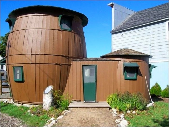 Jika melihat rumah ini mungkin kita bisa melihat tong besar yang tak terisi, padahal ini adalah sebuah rumah tong kayu yang berfungsi untuk mengawetkan anggur. Rumah ini berlokasi di Michgan, Amerika .