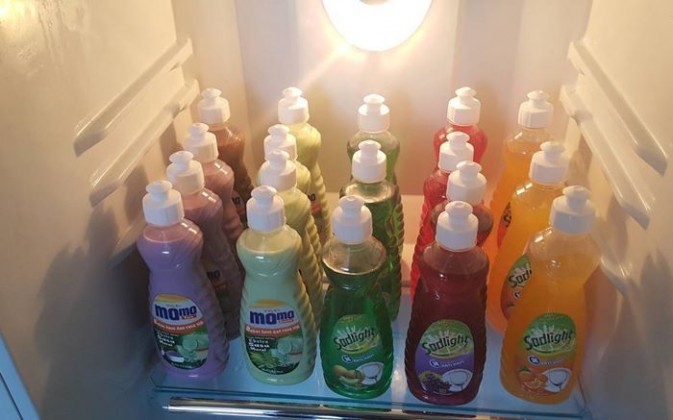 Contohnya, minuman bersoda diberi nama ‘Sodlight’ dibuat sangat mirip dengan cairan pencuci piring merek ‘Sunlight’. Sementara minuman berbahan susu diberi nama ‘Momo’, dibuat sangat mirip dengan cairan pencuci perabot rumah tangga, ‘Mama Lemon’.