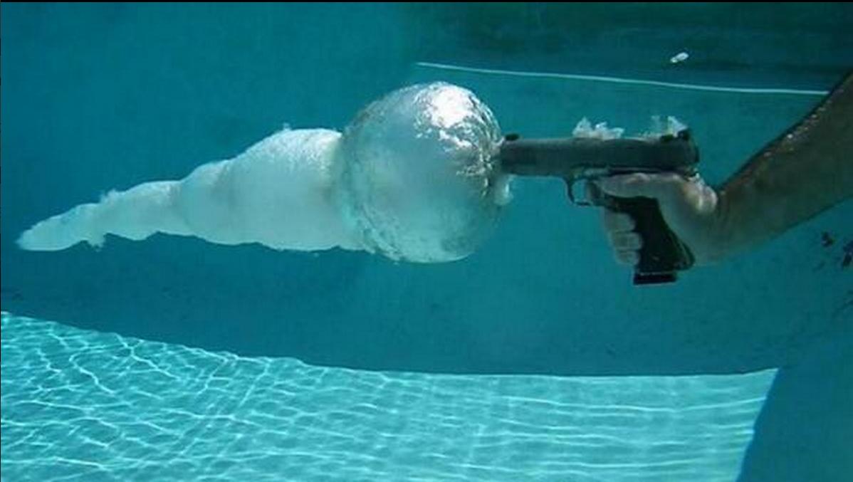 "Peluru lebih sulit untuk bergerak di dalam air daripada udara, karena molekuk air lebih rapat dari molekul udara," katanya si Andreas