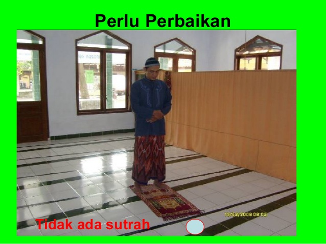 Nabi melarang perbuatan tersebut seraya bersabda : "Apabila salah seorang diantara kalian shalat menghadap sutrah, hendaklah ia mendekati sutahnya sehingga setan tidak dapat memutus shalatnya. (Shahih Al-Jami' : 650) Inilah contoh perbuatan beliau "Apabila beliau shalat di tempat terbuka yang tidak ada seorangpun yang menutupinya, maka beliau menamcapkan tombak di depannya, lalu shalat menghadap tombak tersebut, sedang para sahabat bermakmum di belakangnya. Beliau tidak membiarkan ada sesuatu yang lewat di antara dirinya dan sutrah tresebut." Shifat Shalat Nabi karya Al-Albani.