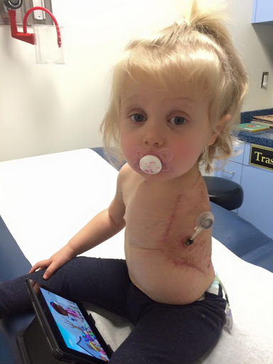Ketika gadis ini sudah berusia 2 tahun ia harus menjalani operasi dan mengorbankan salah satu lengannya. Apa boleh buat, demi menyelamatkan hidupnya ia rela amputasi lengannya dan hidup dengan satu tangan saja. Untuk menutupi bekas amputasi tersebut, kulit tubuh bagian tengahnya harus diambil.