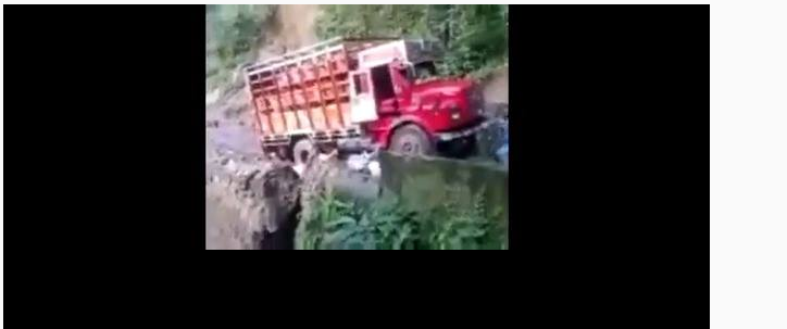 Sedangkan di sisi kanannya ada jurang yang dalam. Namun, cuplikan selanjutnya adalah peristiwa yang mengerikan. Di mana truk dengan bak terbuka itu, ban kanan belakangnya terjepit tanah, membuat ban tersebut terperosok. Seluruh penumpang yang berada di dalam truk akhirnya turun agar menghindari longsor pada jalan tersebut.