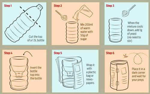 Nah, cara aman untuk membasmi nyamuk adalah dengan membuat perangkap nyamuk. Kamu hanya butuh sebuah botol bekas air minum bekas ukuran besar dan bahan-bahan alami ini: