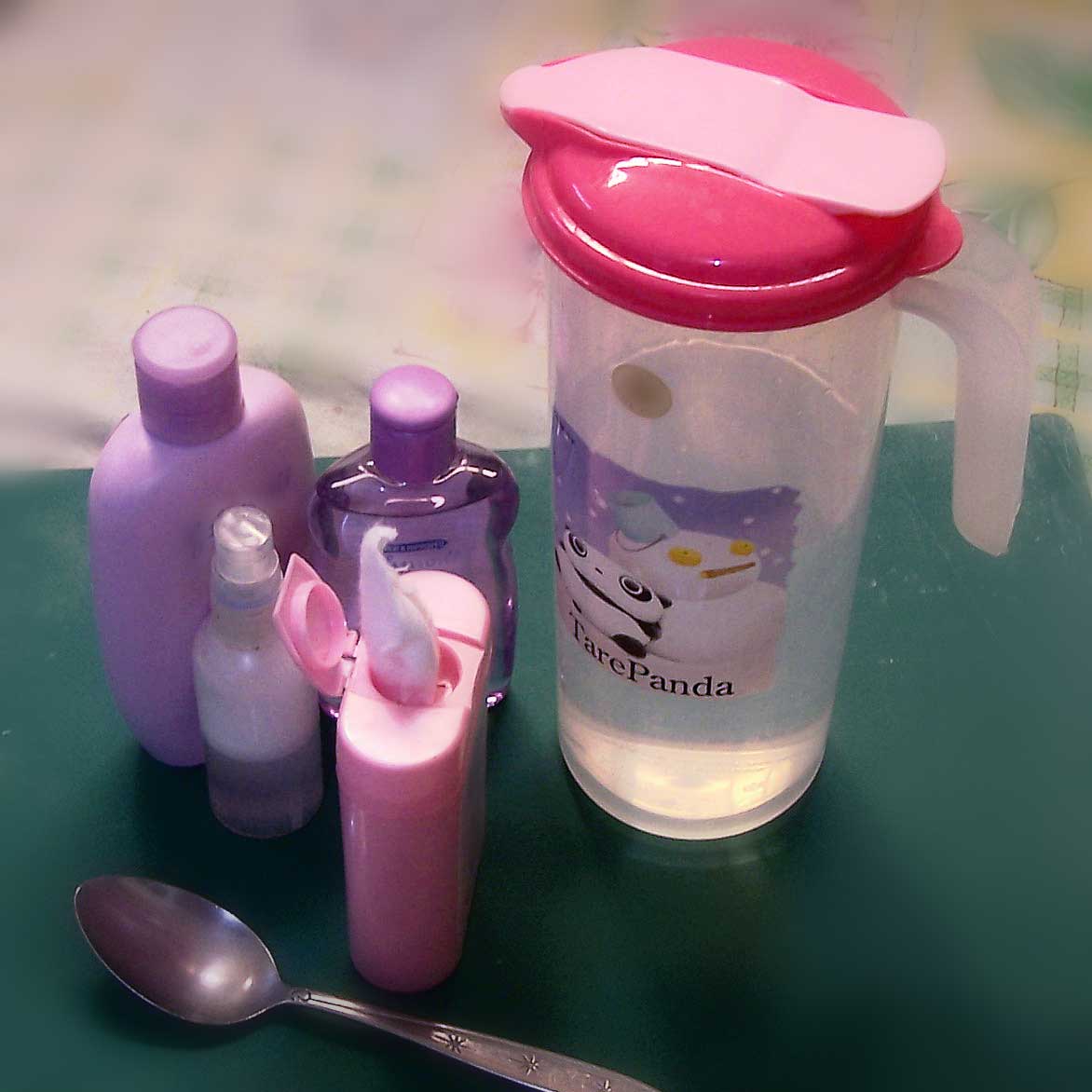 4. 1 sdm sabun mandi cair khusus baby (bisa dikurangi sesuai kebutuhan untuk pup atau pipis), agar tidak terlalu licin bisa pilih yang PH nya rendah