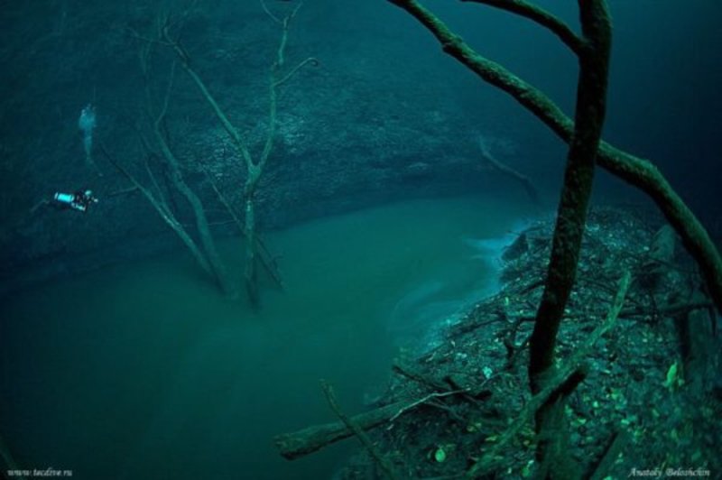 Nah, Sekarang kami akan membahas tiga karakteristik Cenote ini yang banyak membingungkan orang, yaitu : Mengapa air asin dan air tawar bisa tidak bercampur? Air asin dan air tawar Dalam deskripsinya mengenai Cenote Angelita, Anatoly Beloschin, seorang fotografer profesional mengatakan : “We are 30 meters deep, fresh water, then 60 meters deep – salty water and under me I see a river, island and fallen leaves.."