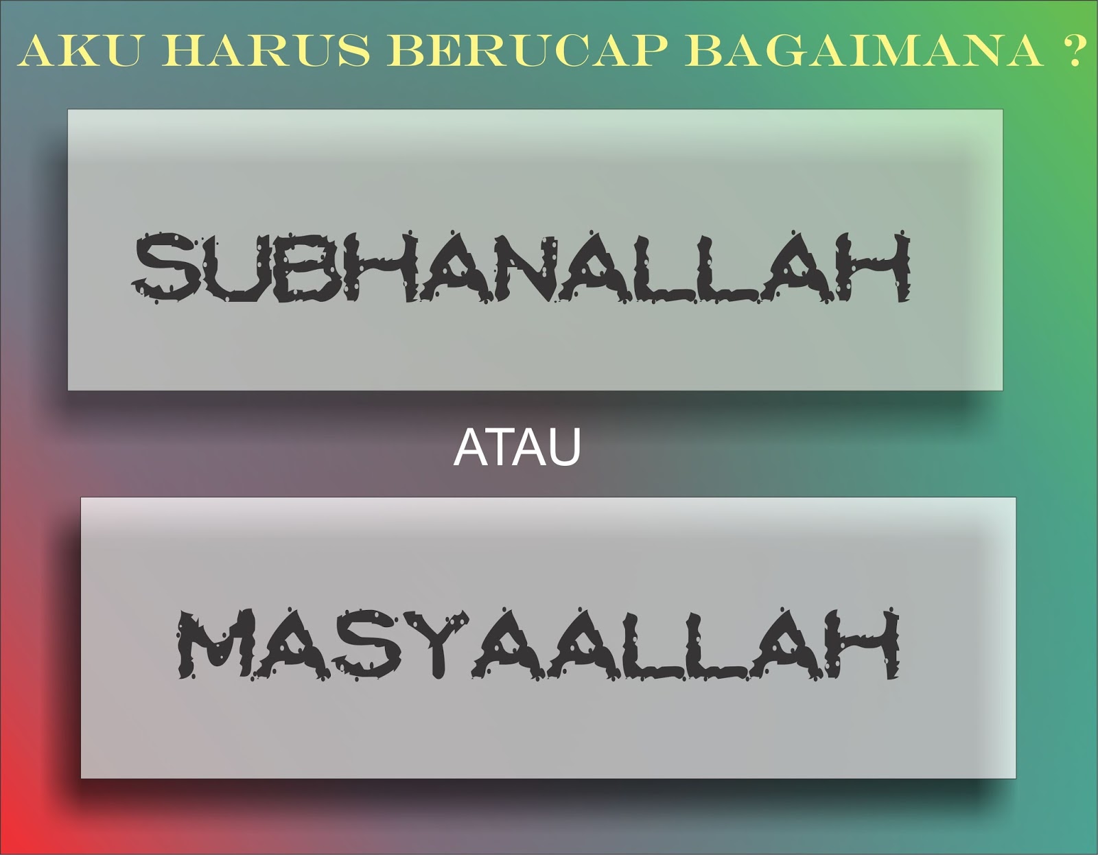 Penulis Dzikir Pikir | Ditayangkan 23 Jun 2016Sebagian umat islam di Indonesia sering keliru dapat menempatkan pengucapan kalimat thayyibah “Subhanallah" dan "Masya Allah" ini. Ucapan “Masya Allah” diucapkan saat kita merasa kagum. Ucapan “Subhanallah” jika melihat keburukan.