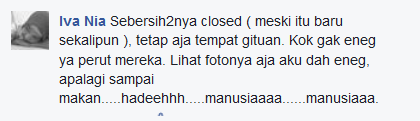 "Jambanisasinya sy setuju... dan gerakan bu sukmaria jg sy setuju yg g setuju maaf makanan ditaruh dijamban itu lho... tdk beradab dan berbudaya ..." tulisnya.
