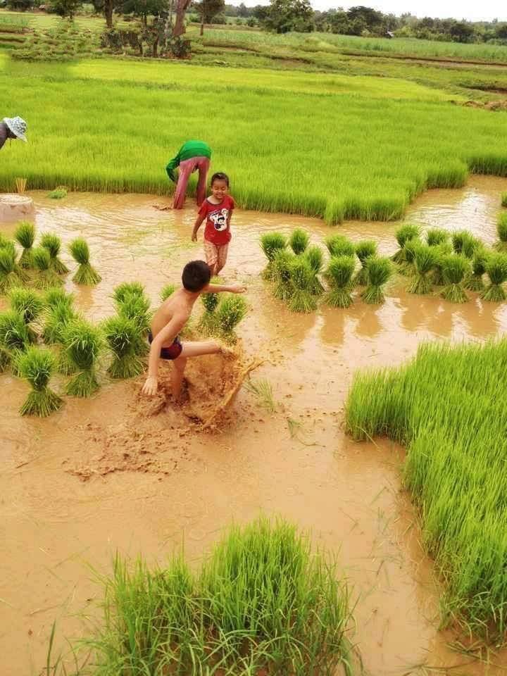 Judulnya memang membantu orang tua, tapi ujung – ujungnya main saja, disekitar area penyemaian padi. Sampai lempar – lemparan lumpur.