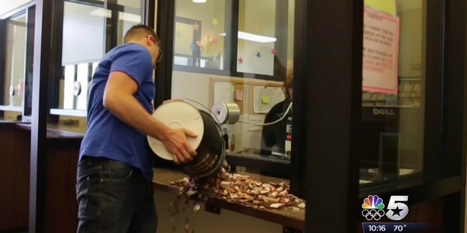 Brett Sanders, seorang pria dari Frisco Texas, mengungkapkan kekesalanya dengan cara yang membuat orang – orang pro dan kontra. Bagaimana tidak dia dikenakan denda atas pelanggaranya yang melebihi batas kecepatan berkendara. Atas denda yang dijatuhkan kepadanya, dia membayar dengan 2 ember uang koin.