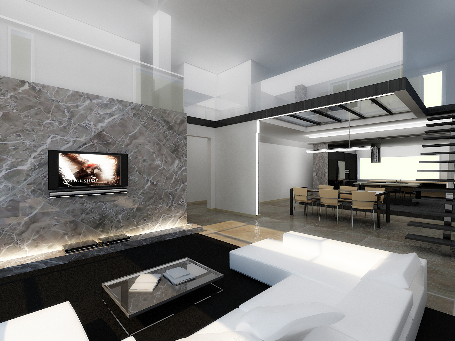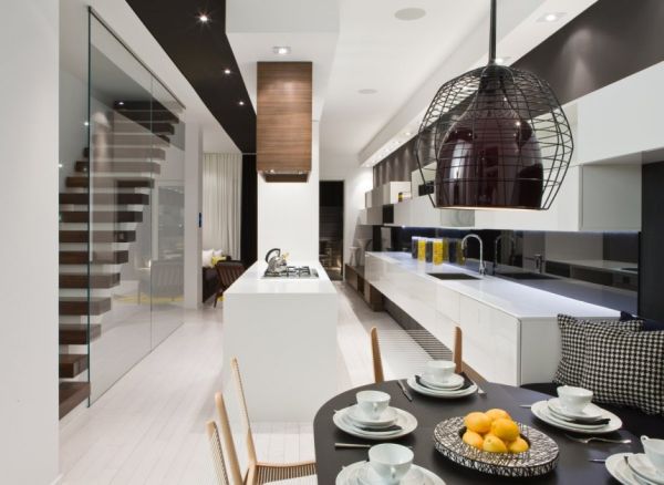 Untuk pengecatan rumah, anda bisa menggunakan warna putih atau abu-abu dengan perabot warna hitam agar kesan modernnya lebih dapat dan menekankan kesan minimalis. Gunakan pula, kaca untuk dekorasinya misalkan pinggiran tangga atau pembatas balkon di ruangan.