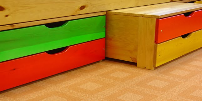 Kebanyakan tempat tidur saat ini datang dengan laci penyimpanan. Hal ini tentunya sangat bermanfaat dan bisa digunakan untuk menyimpan berbagai barang termasuk pakaian sekalipun. Namun jika tempat tidur anda masih konvensional yang masih terdapat kolong, anda bisa menambahkan tempat penyimpanan barang di bawah tempat tidur sesuai dengan keinginan anda sendiri.