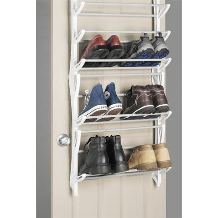 Salah satu solusi mengenai hal ini adalah dengan memanfaatkan bagian belakang pintu menjadi sebuah rak sepatu gantung. Anda bisa membeli rak gantung sepatu di toko-toko. Biasanya rak gantung ini berbahan polyester dan katun.