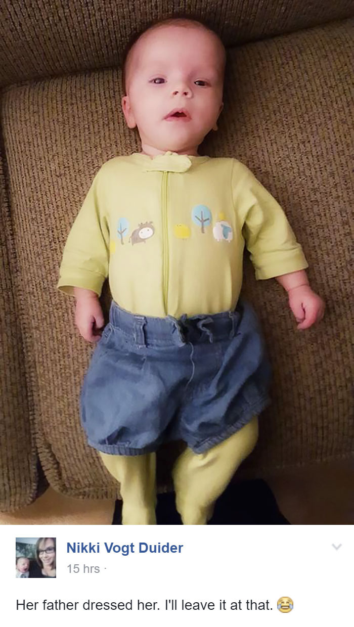 Jadi orang tua itu sulit, gak segampang yang kamu bayangin. Banyak pelajaran baru yang bakal diterima oleh ayah ibu saat punya anak pertamakalinya. Contohnya ini, beberapa ayah terbukti gagal saat memakaikan baju anaknya, Demikian kutipan dari keepo.me (15/7/2016). Bukannya ngegemesin, si anak malah kelihatan aneh. Duh!