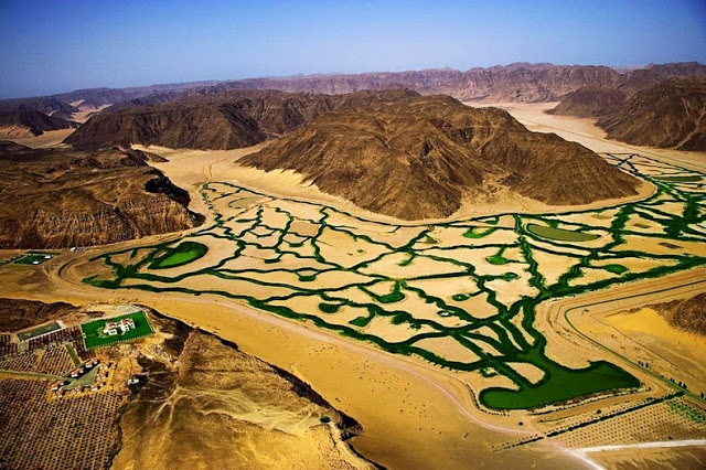 Dilansir dari tarbiyah.net perubahan gurun pasir menjadi kebun hijau tersebut dirintis setelah diketahui bahwa ternyata di bawah gurun pasir terkandung sumber air cukup melimpah, di bawah kedalaman 30 – 400 meter. Air itu kemudian diangkan dengan teknologi pertanian sistem pivot water nozzles (nozel air berputar) sehingga menjadi irigasi sistemik bagi tanaman di sana.