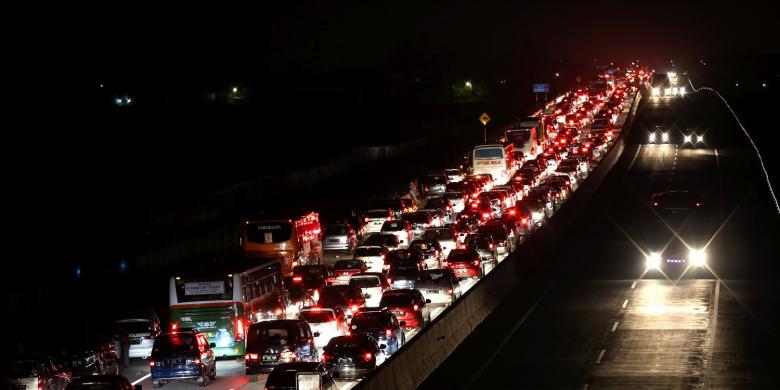 | Ruas Pejagan-Brebes Timur dipadati kendaraan pemudik hingga 23 kilometer pada Sabtu malam (2/7/2016) |